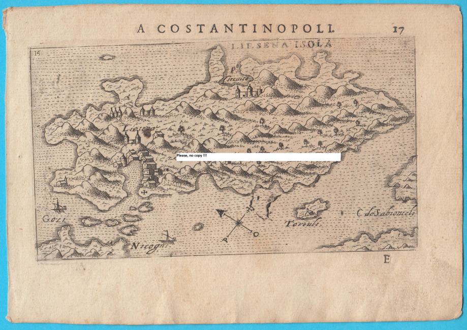 OTOK HVAR (Liesena Isola) originalna karta otoka Hvara iz 1598. godine