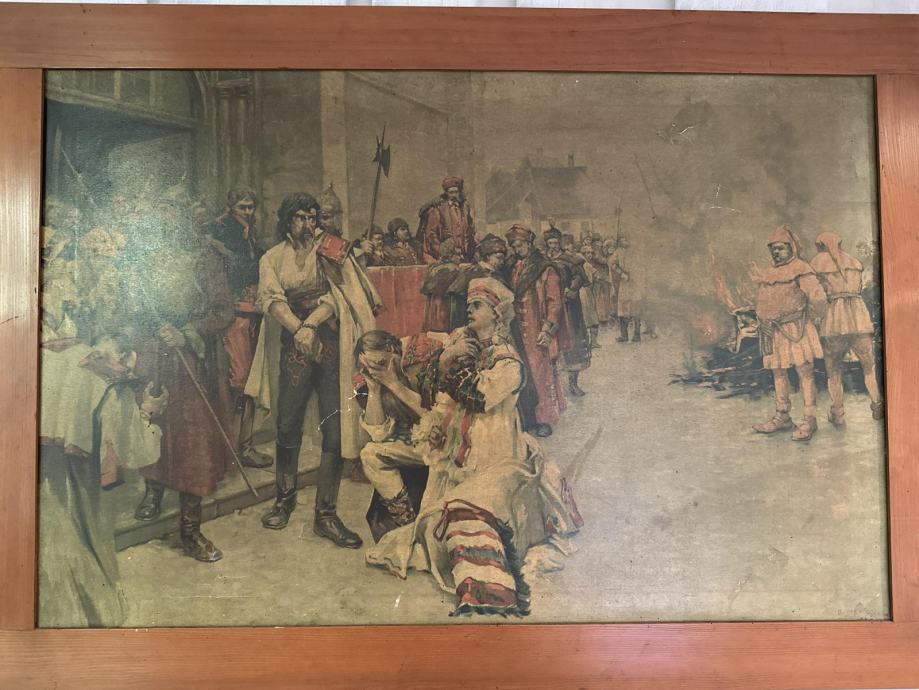 Replika umjetničke slike "Smaknuće Matije Gupca (na trgu ispred crkve sv. Marka u Zagrebu)" slikara Otona Ivekovića nastale 1912. godine. Replika je slikana 1921. godine na platnu i očuvan je originalni okvir. Stručnom ekspertizom potvrđeno je da je ovu repliku originalnog djela naslikao sam autor Oton Iveković, jedan od najvećih slikara hrvatskog historicizma. Kako postoji manje oštećenje površine slike potreban je rastauracijski zahvat. Na tržištu je nekoliko replika iz ruke slikara. Dimenzije: 64x96 cm.