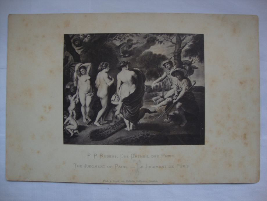Predivana slika izrađeno Wilhelm Hoffman u Dresdenu oko 1900. godine motiv: The Judgment of Paris od Rubensa