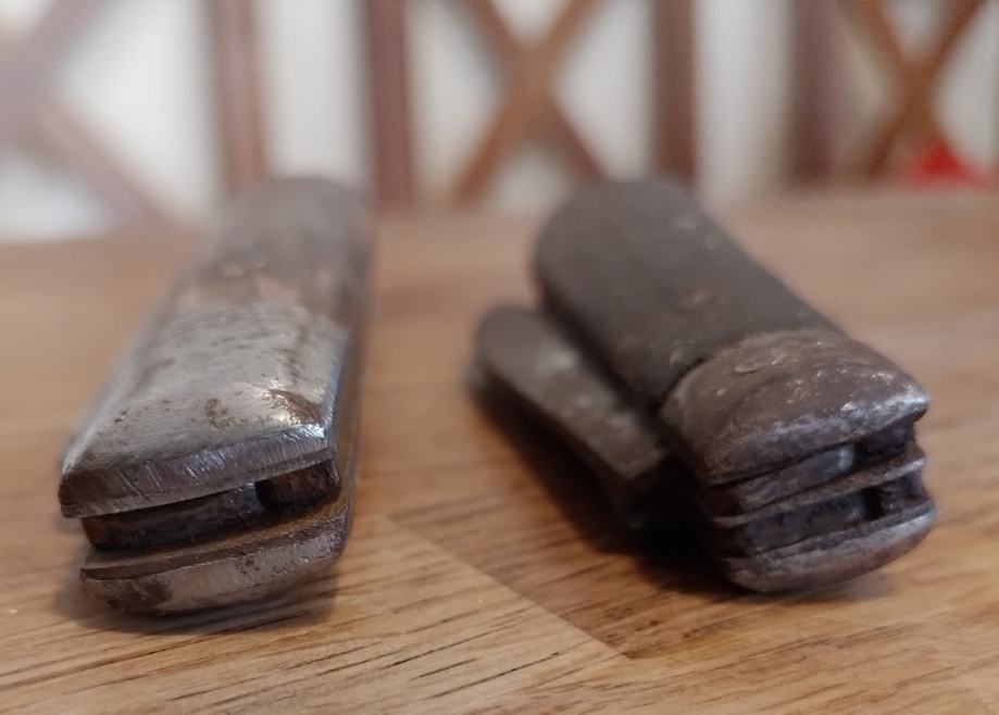 Pronađeno nečišćeno stanje,dužine sklopljenih 11.2cm te 8.8cm,dobre debljine.SISTEM ZATVARANJA NA OBA VIŠE NEGO UREDAN(cjena za oba zajedno je 12e)-(slanje nakon uplate predmeta na račun)