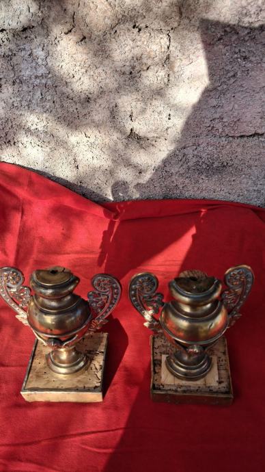 Prodaje se par antiknih skulptura visine od cca 23 cm koji su moguće bili crkveni svijećnjaci. Skulpture su restaurirane ali su nefunkcionalne kao svijećnjaci pa ih prodavatelj prodaje isključivo kao ukras. Skulpture su od metala (moguće od bronce) te su montirane na drvo (vidljivo na slikama). Skulpture se prodaju isključivo zajedno za cijenu od 320 eura. Mogućnost osobnog preuzimanja u Zadru. Kontakt broj mobitela: 091 131 10 36.