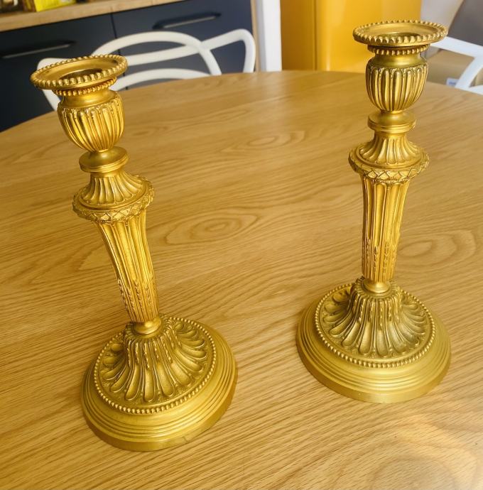 Par pozlaćenih brončanih svijećnjaka Louis XVI s kraja 18-og stoljeća
