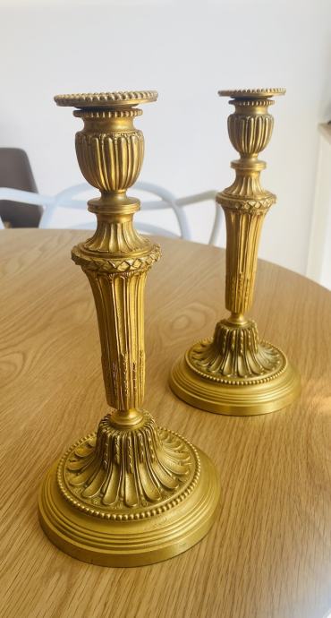 Prodajem par pozlaćenih brončanih svijećnjaka Louis XVI iz 18-og stoljeća u savršenom stanju. Ovi originalni svijećnjaci su antikivitetni, u sjajnom stanju visine 27 cm visina.