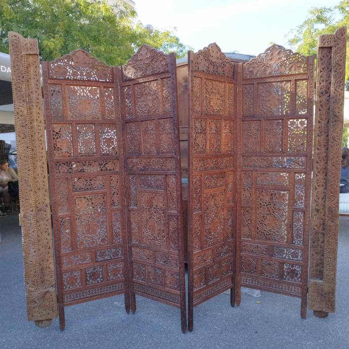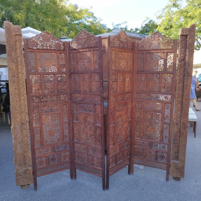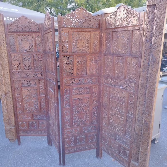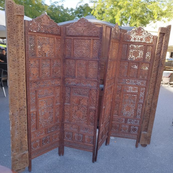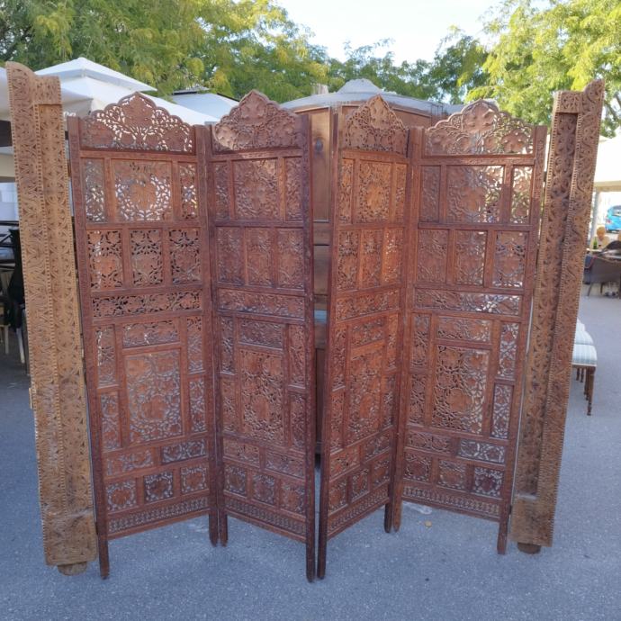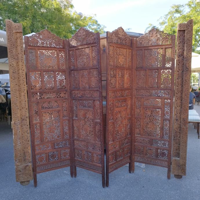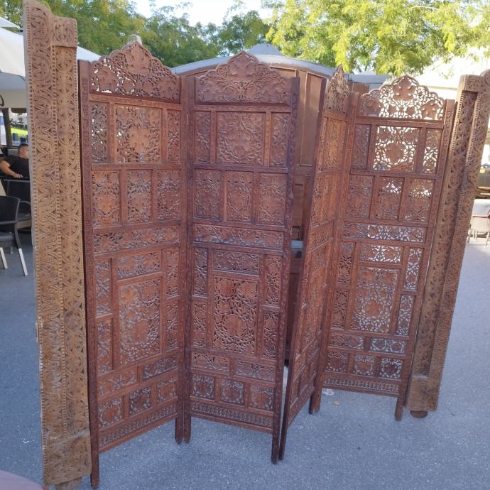 Zidna stijena (paravan) drveni sklopivi vis 200cm, šir 200cm (4×50 cm+po cca 20 cm štok),očuvan, neoštećen, ispravan, jako lijep primjerak povoljno prodajem