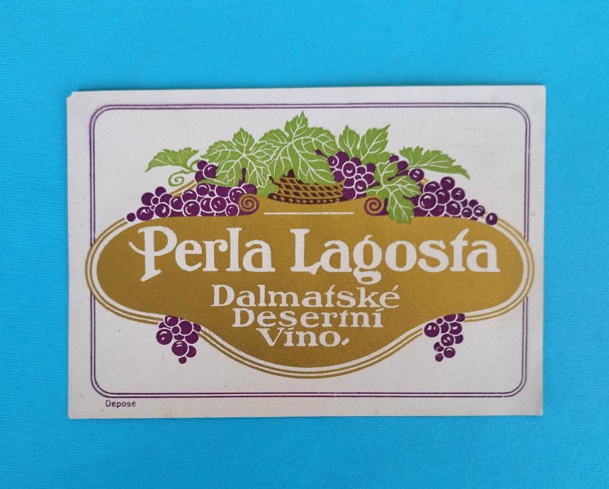 Stara originalna Češka predratna etiketa za vino "Perla Lagosta" (Lastovska Perla).