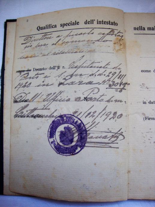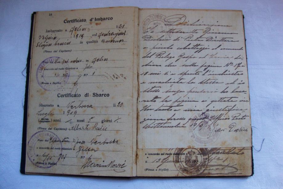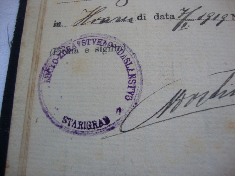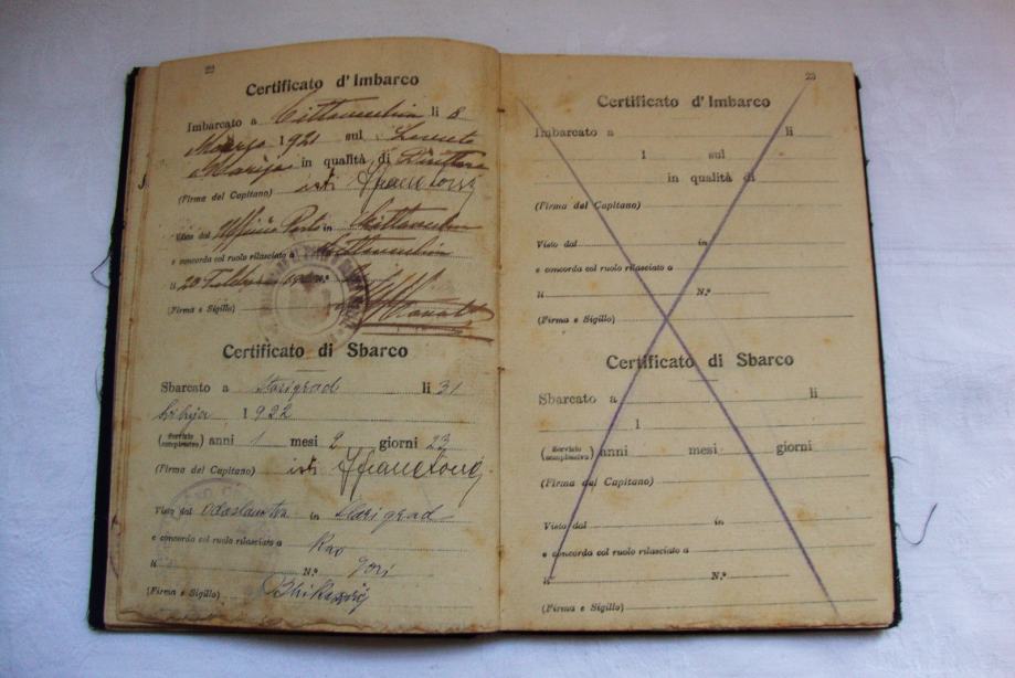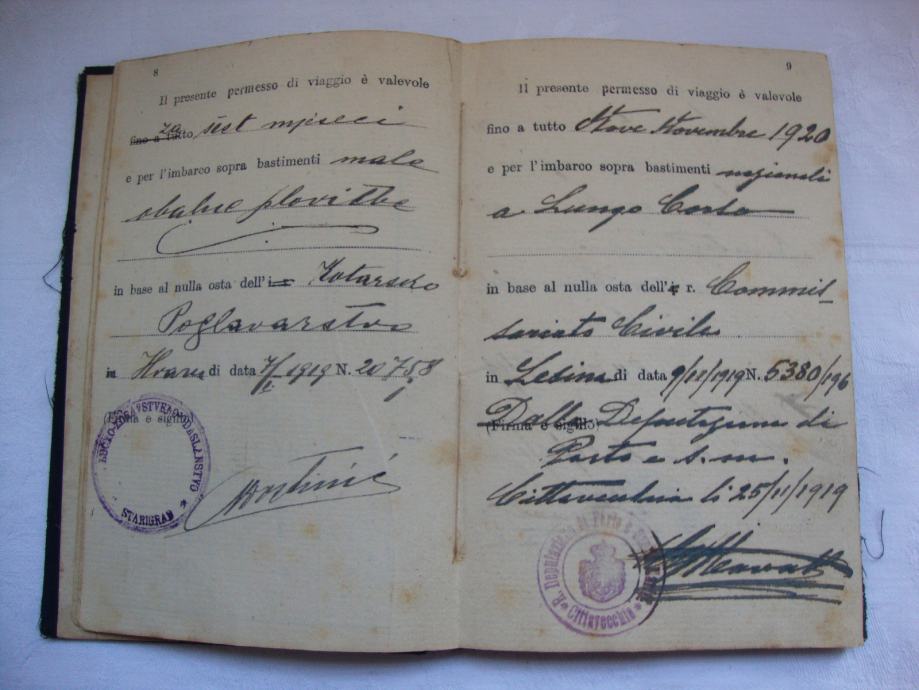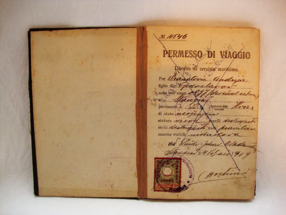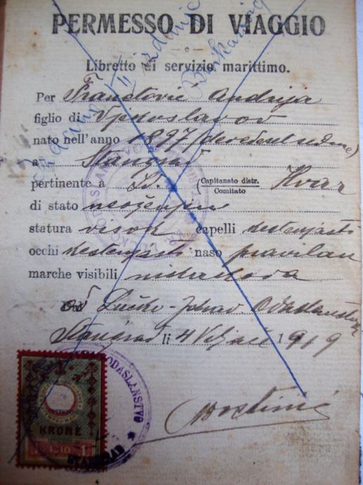 Stara pomorska knjižica ili dozvola za putovanje (matrikula) iz 1919.godine otok Hvar (Starigrad )