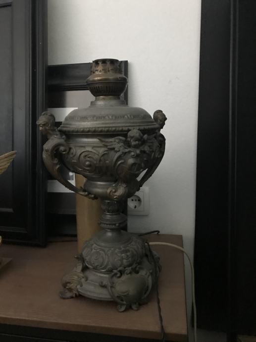 Antikna, petrolej lampa iz perioda Historicizma. Elektrificirana. Impozantna, nema se što puno reći. Fotografija govori sve.
