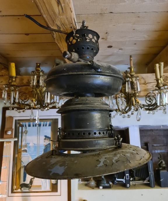 Stara brodska svića sa spremnikom za petrolej. Dimenzije otprilike 55 cm visine i 45 cm širine. Stanje vidljivo na fotografijama.