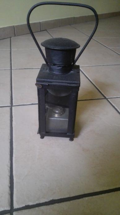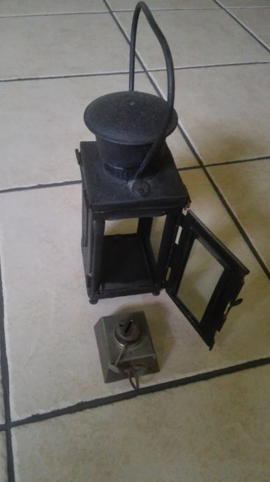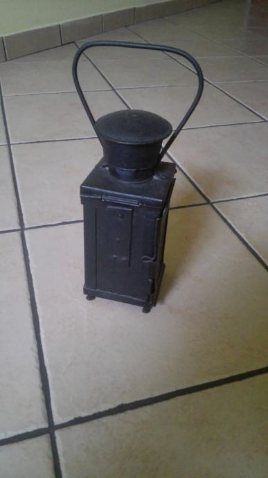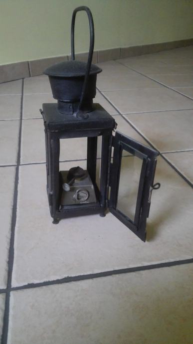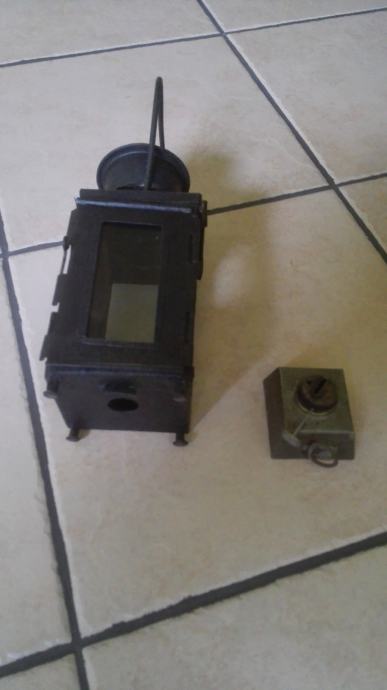 Prodajem predivnu staru željezničarsku lampu sa svim dijelovima.Lampa je visine 30cm i širine 9cm.Sa tri strane je ustakljena i kada se otvore vratašce vadi se limeni uložak u koji se sipa petrolej.