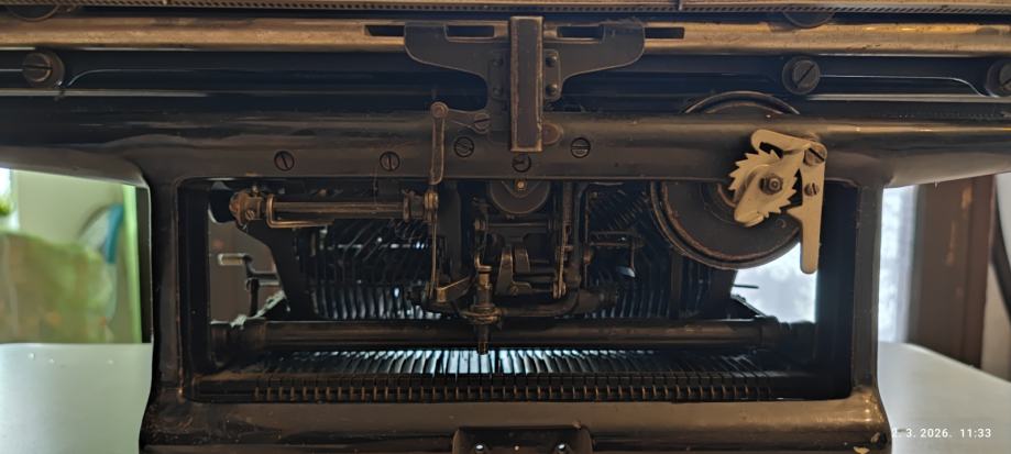 Iz prve polovice 20. St, u mojoj obitelji bar 40 godina, uvijek na suhom i toplom mjestu. Na njemu su se tipkali stihovi pjesama, i ostavština je mojih roditelja. Sve radi i kompletan je.