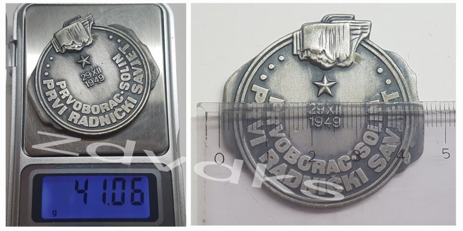 Plaketa u kutiji PRVOBORAC SOLIN, PRVI RADNIČKI SAVJET 29. XII. 1949.