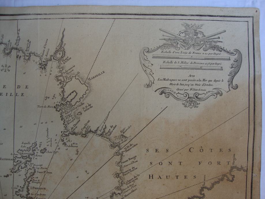 ce Vend chez Laurent BREMOND sur le Port-a MARSEILLE du coin de Reboul avec Privilege du Roy 1720.