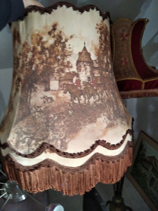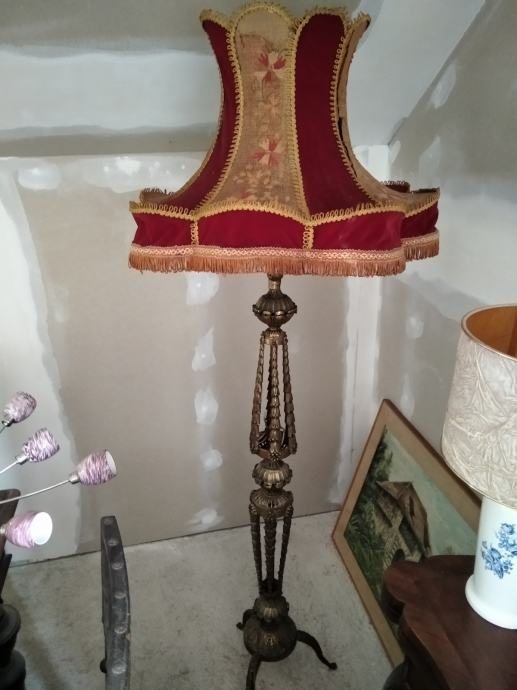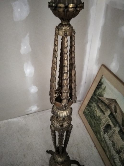 Unikat secesijska podna mesingana svjetiljka...vrkunski rad.s dva širma..jedan potrebno obnoviti