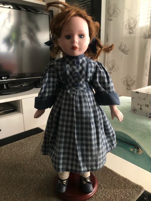 Prodajem porculansku lutku sa stalkom visine 43 cm. Cijena 30 eura. Tijelo lutke je platno, a lice, ruke i noge su porculanske.