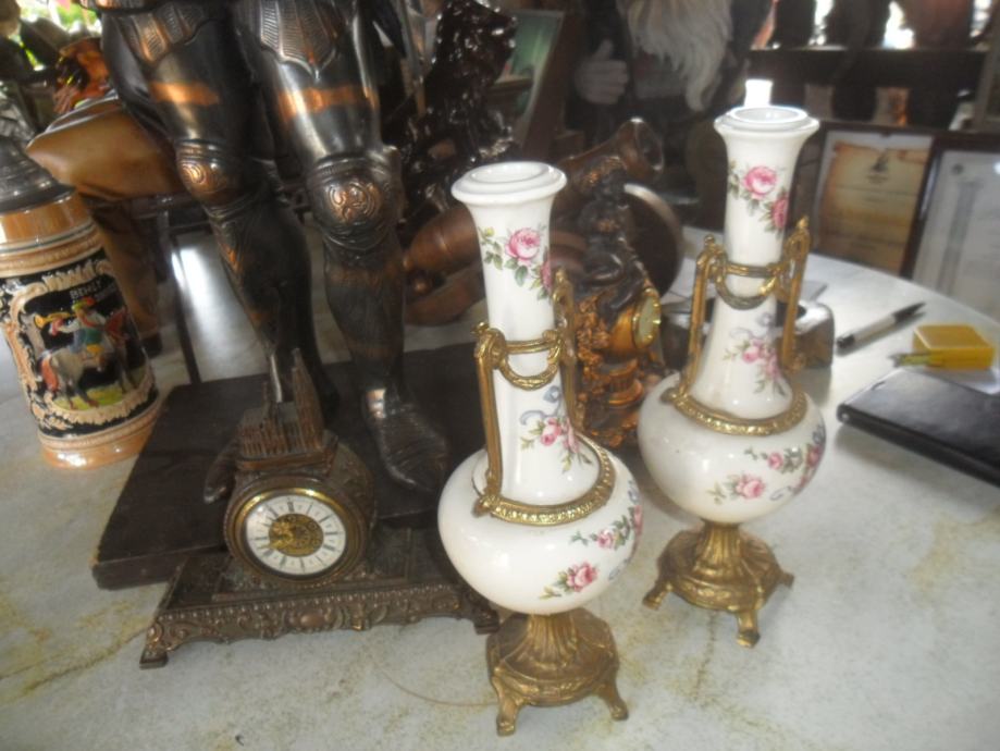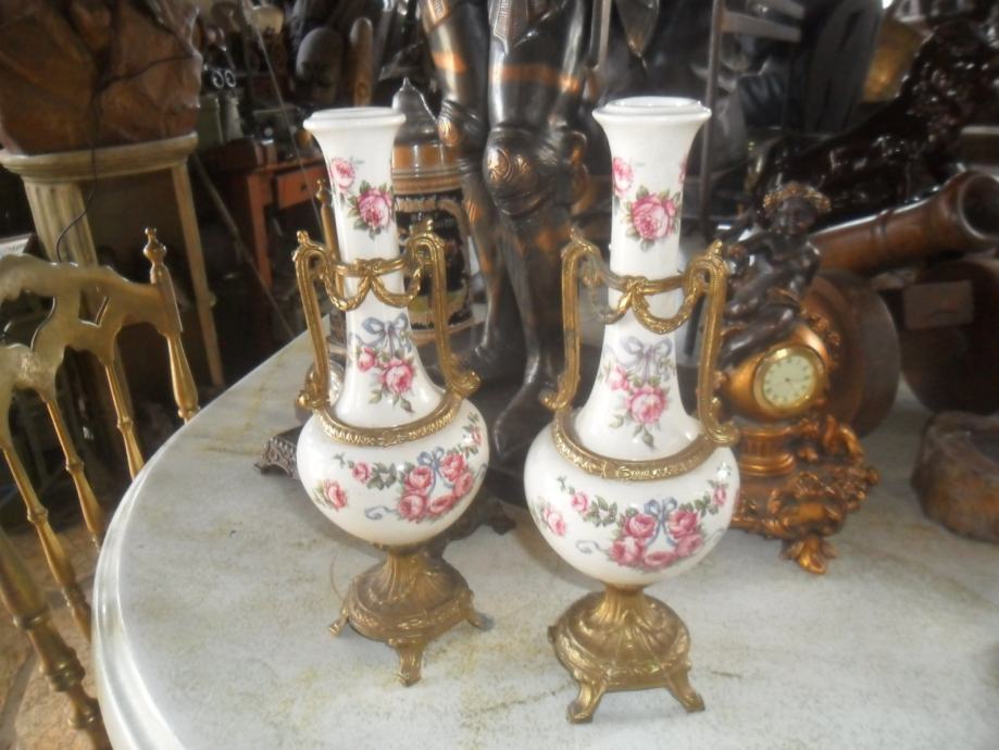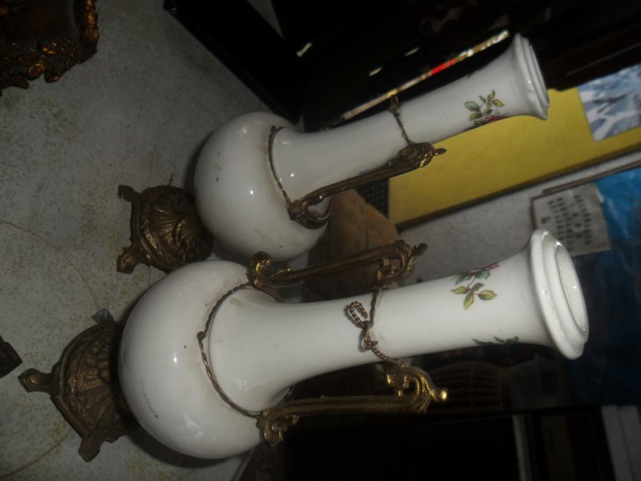 imam 2 identična komada,keramiga je okovana nekom vrstom metala ili mesinga(neznam točno koji je materijal)kompletne su i bez oštečenja,visina je 26cm,širina je 9cm,prekrasne su kada je cviječe unutra..navedena cijena je za obje..pogledajte moje ostale oglase starina i antikviteta