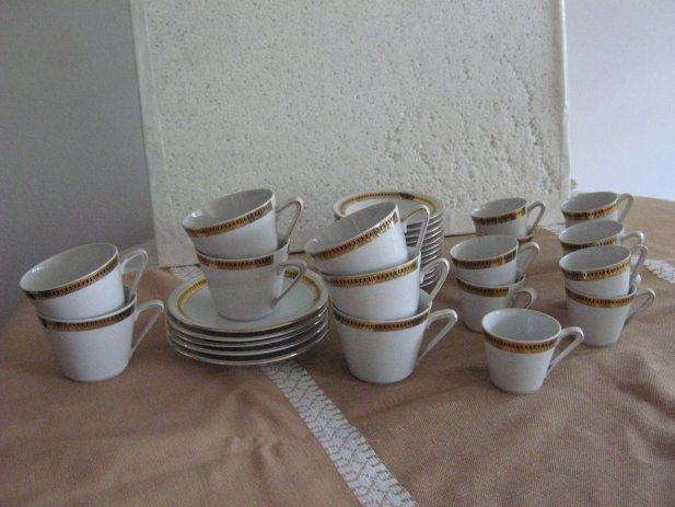 Porculanski servis za kavu Edelstein Bavaria: 7 većih šalica, 5 tanjurića, 11 manjih šalica, 12 tanjurića