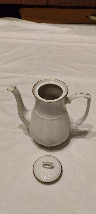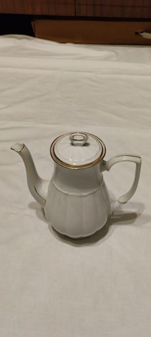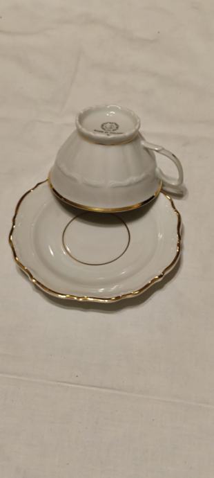 Prodajem prekrasan, elegantan vintage set za kavu ili čaj od bijelog porculana s decentnim zlatnim rubom. Ovaj set ima klasičan dizajn, očuvan je, bez oštećenja