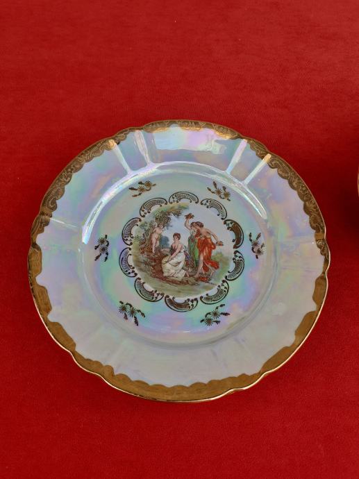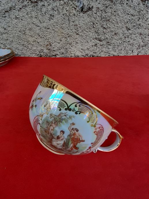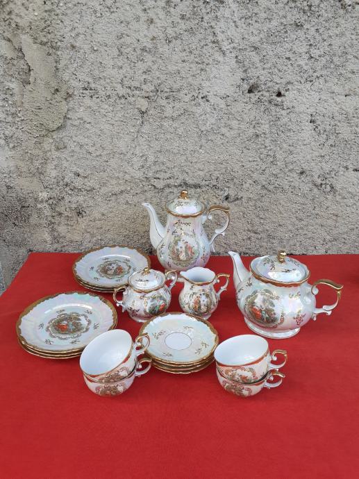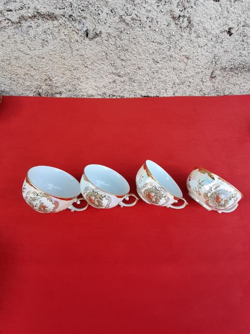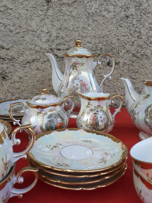 Prodaje se porculanski set za kavu i čaj marke Oscar Schlegelmilch sa četiri šalice i šest desertnih tanjura. Set je oslikan sa dva različita motiva tako da se različiti motivi nalaze na različitim ili istovrsnim komadima seta (vidljivo na fotografijama). Zbog nedostatka dvije šalice (u setu ih treba biti šest) i navedenih različitih oslikanih motiva na komadima seta isti set se prodaje kao nepotpun odnosno označava od strane prodavatelja kao oštećen/neispravan. Cijena seta je 186 eura. Mogućnost osobnog preuzimanja u Zadru. Kontakt broj prodavatelja 091 131 10 36.