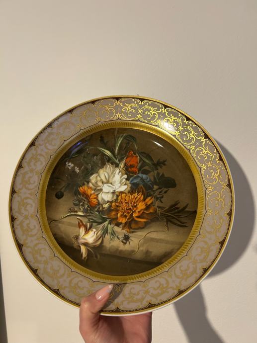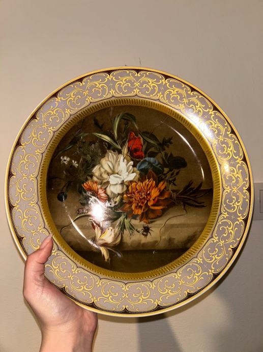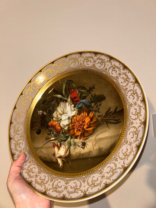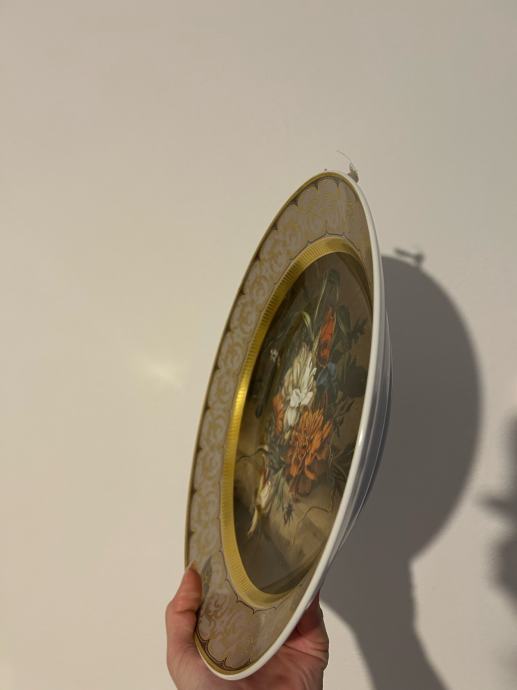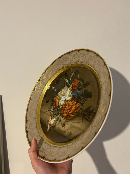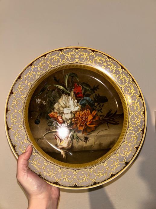 Tanjur prikazuje motiv buketa cvijeća prema originalnom djelu nizozemske slikarice Rachel Ruysch iz 1665.-1750. godine.