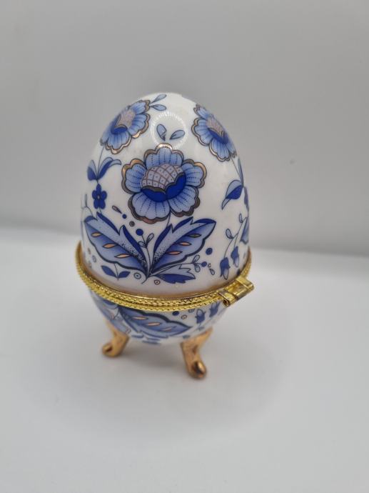 Porculansko jaje sa plavim cvjetnim detaljima