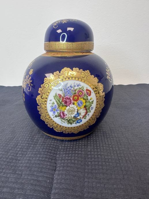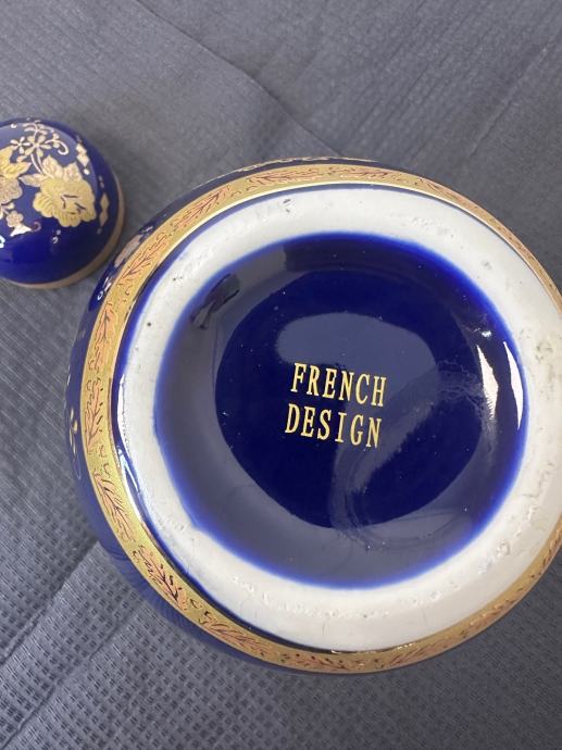 Posuda sa poklopcem, kobalt plava sa zlatnim.