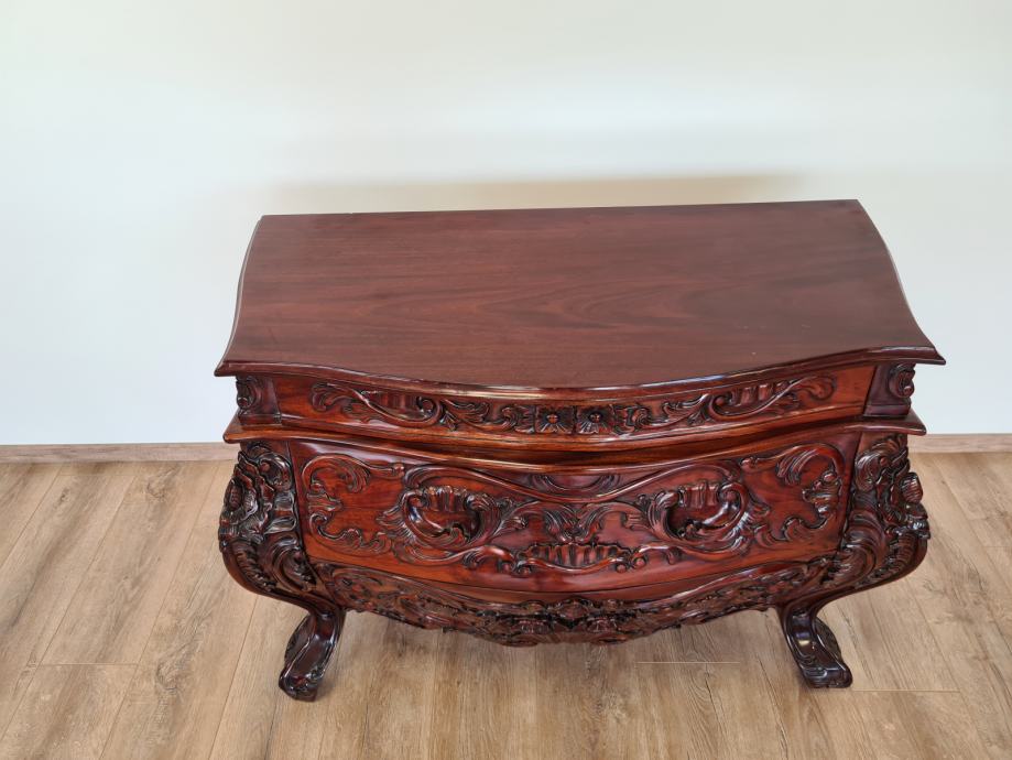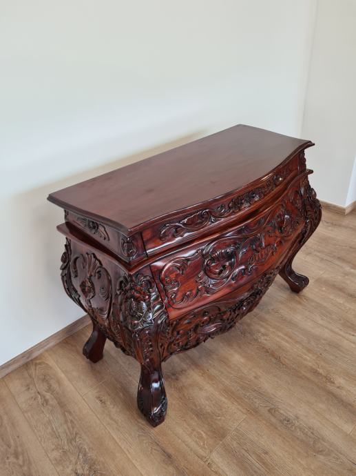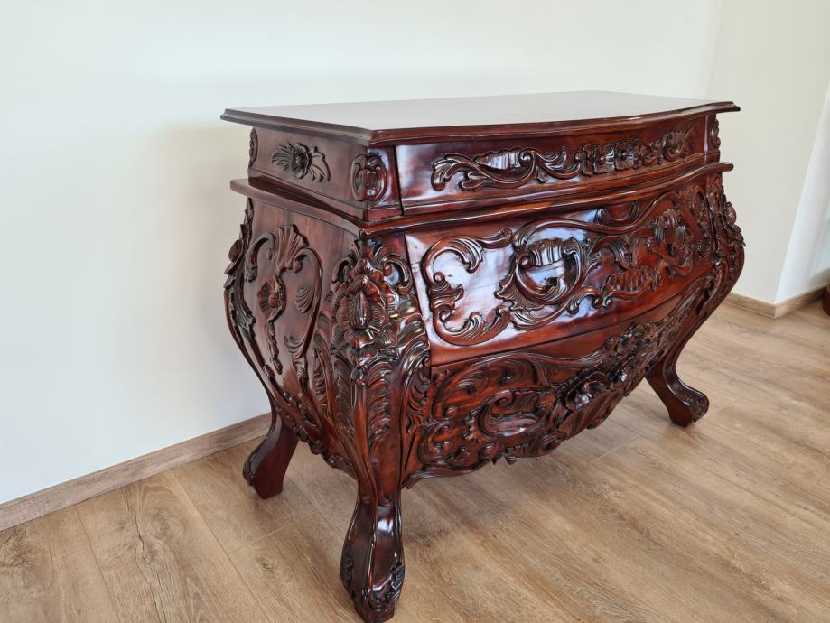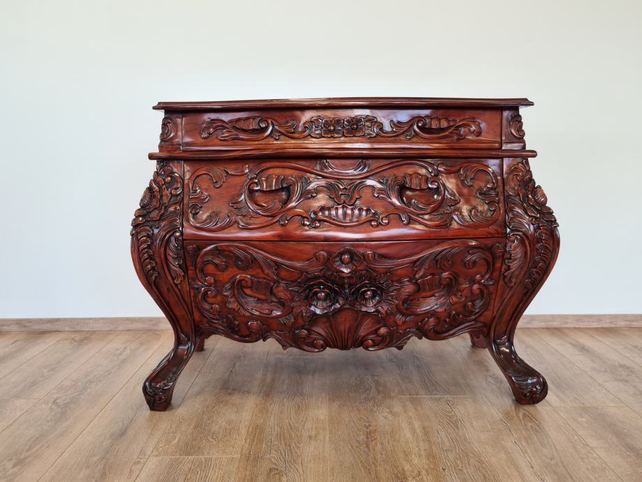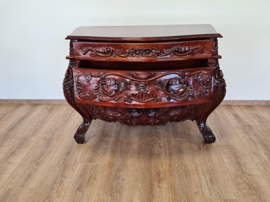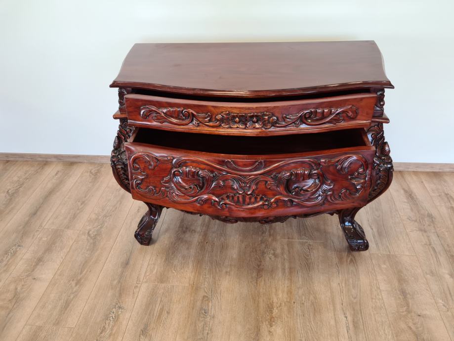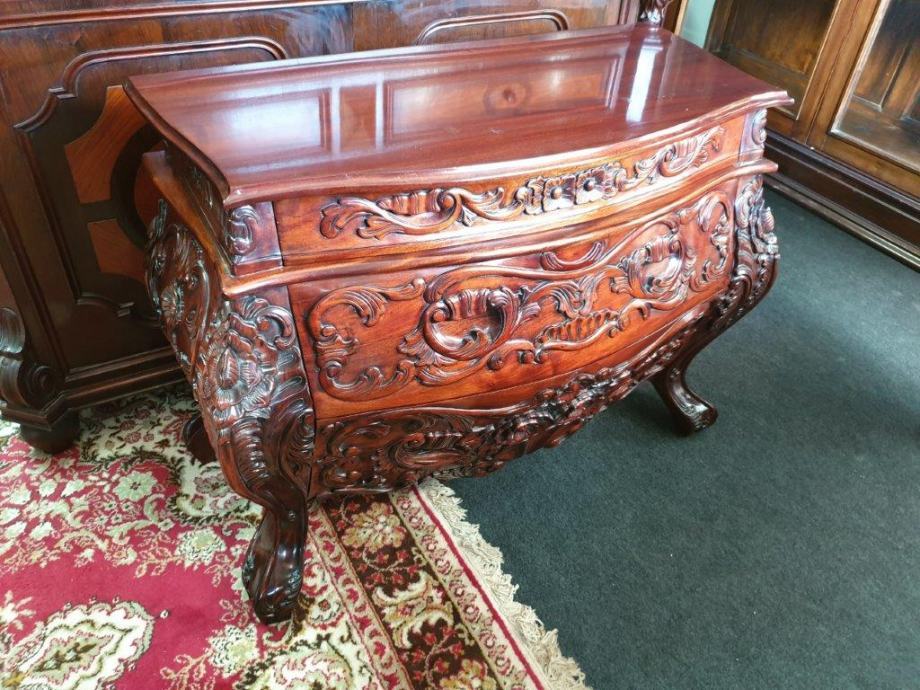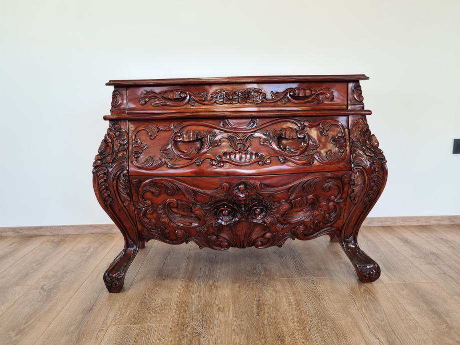 Barokna komoda, predivan rad u drvetu, manjih dimenzija od standardnih komoda tog tipa, odlično stanje.