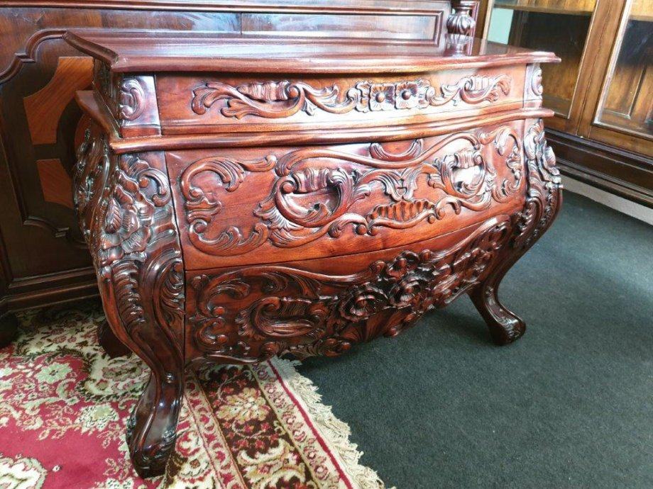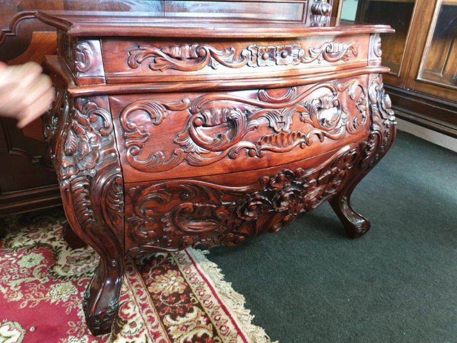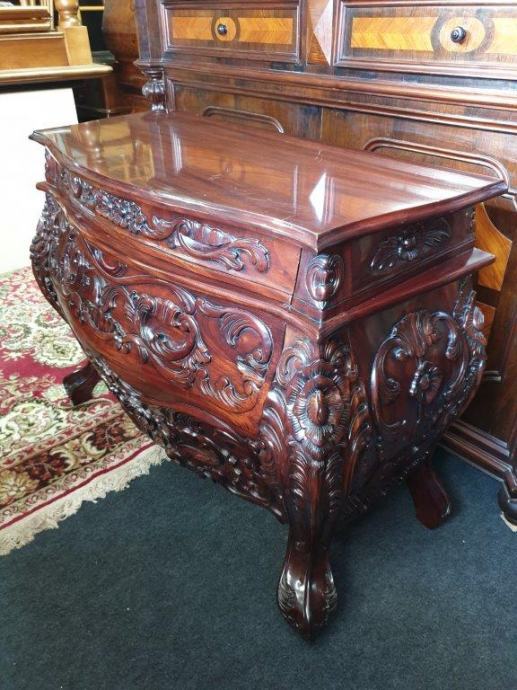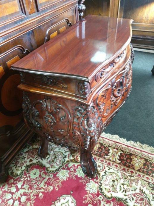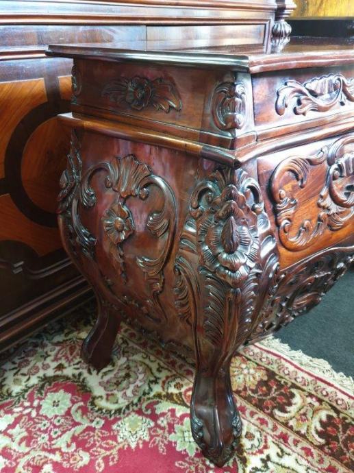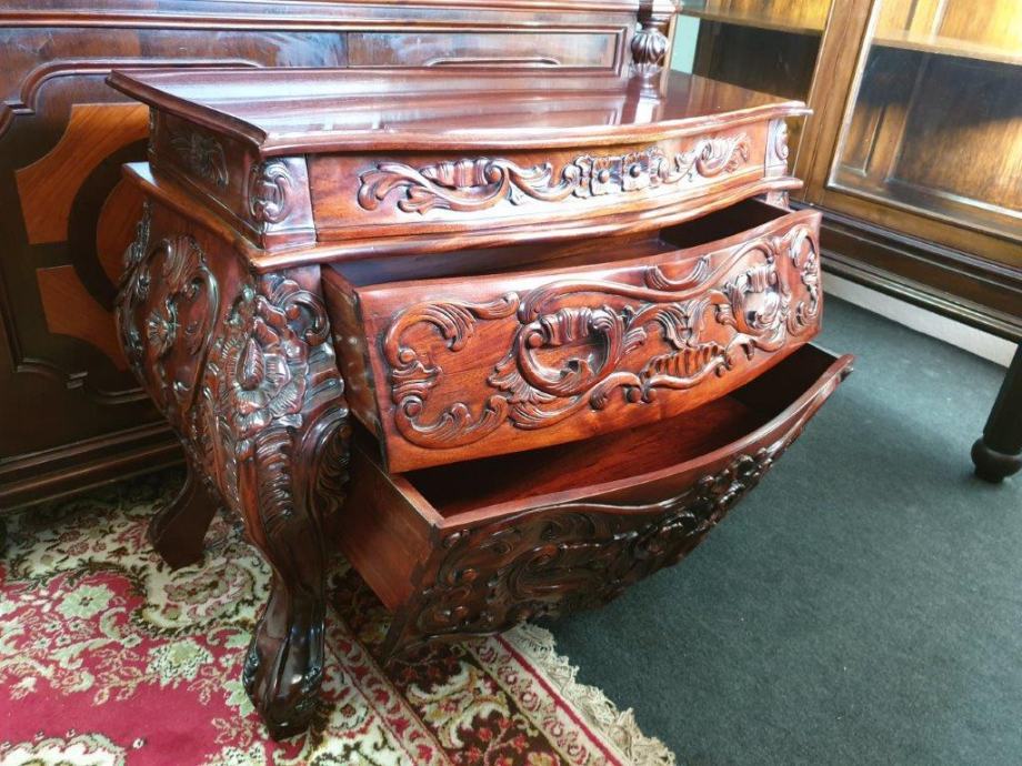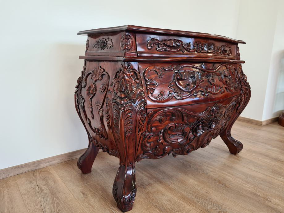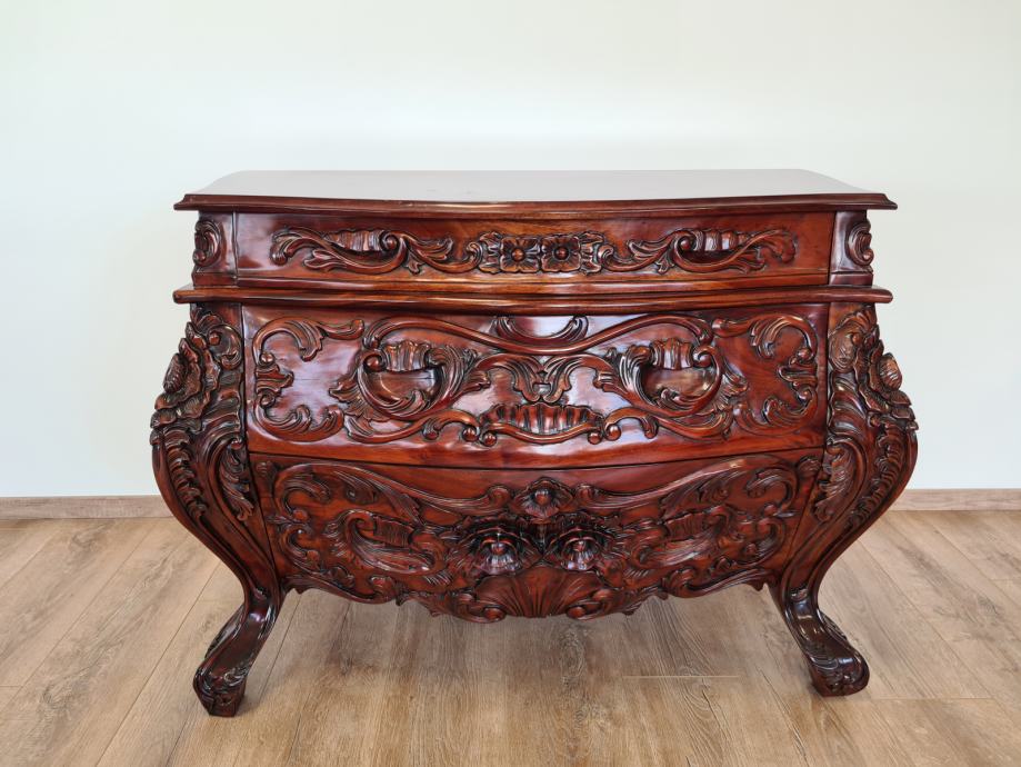 Barokna komoda, predivan rad u drvetu, manjih dimenzija od standardnih komoda tog tipa, odlično stanje.