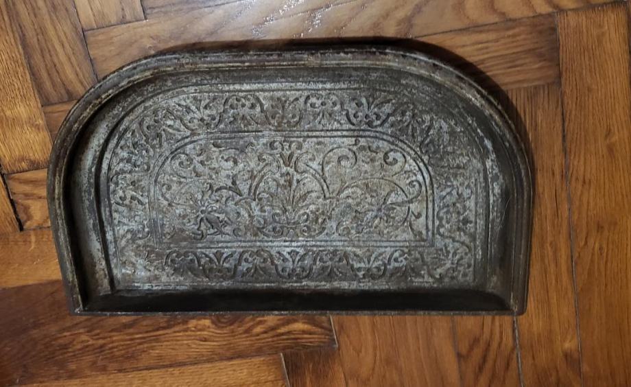 Predpećnjak (posuda za pepeo ispred peći) original sa početka 1900-ih, ispred starinske kaljeve peći