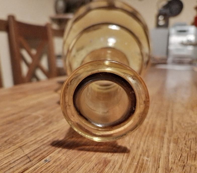 Visine 23.3cm,donji promjer 14.2cm,tanko antikno jantar staklo,bez oštečenja