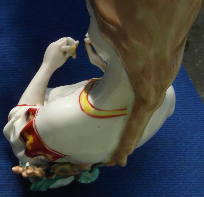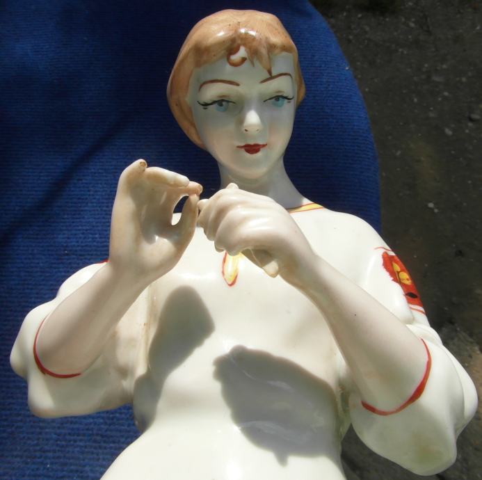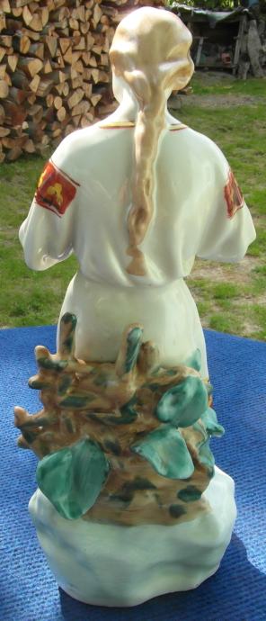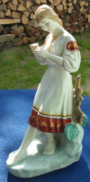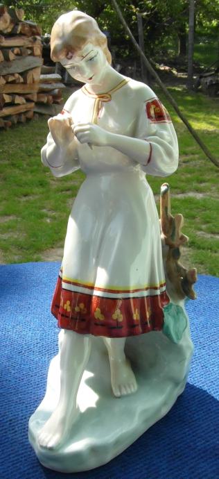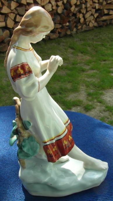 Djevojka u ruci drži cvijet i igra igru "Voli me ne voli". Visina 30 cm.