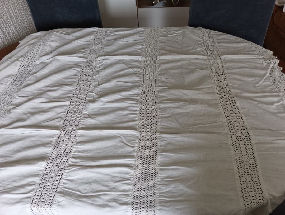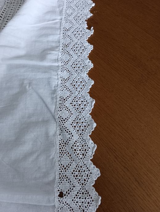 Od tankog platna sa heklanim umecima (na 2 mjesta manje oštećenje kao na slici).