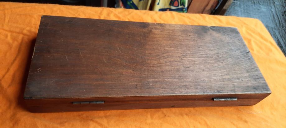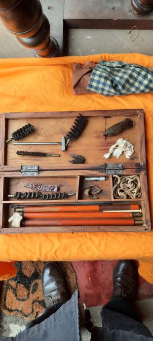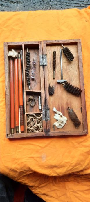 Pribor za čišćenje oružka, raritet. Visina kutije - 5 cm, dužina - 34 cm, širina - 14 cm.