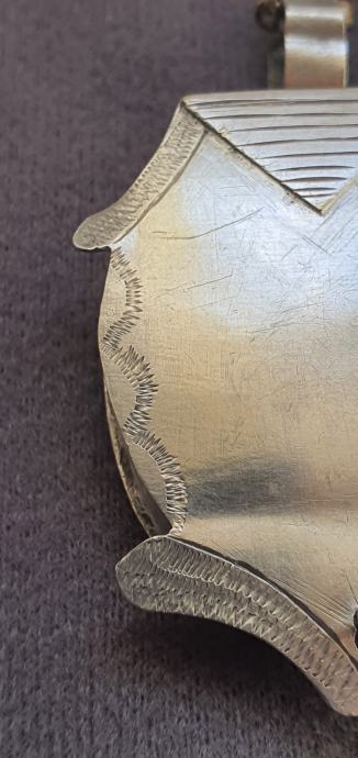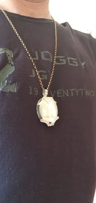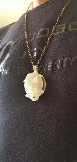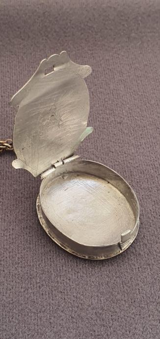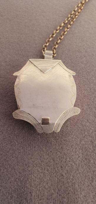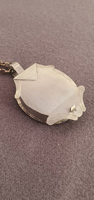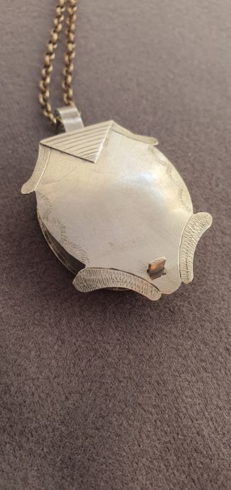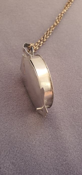 Ukupne dimenzije 5,8 cm x 3,5 cm x 1 cm vrlo lijepo očuvan uz njega ide i krasan srebrni lanac