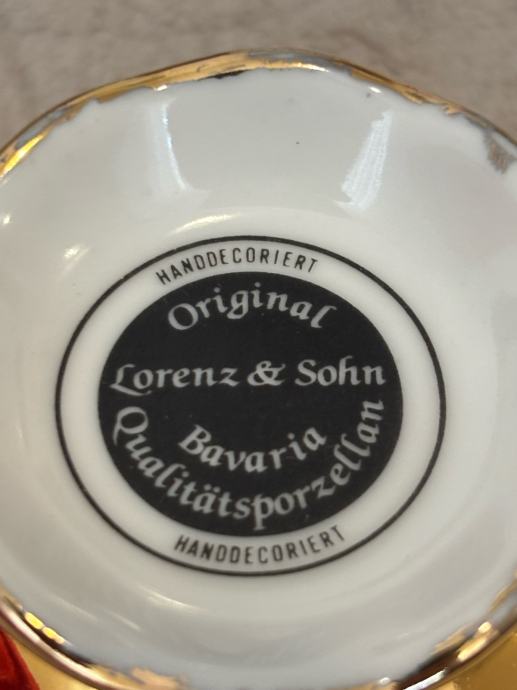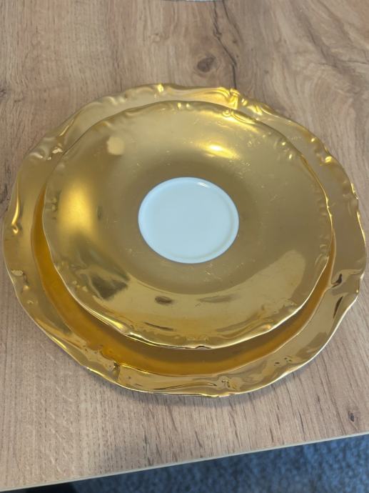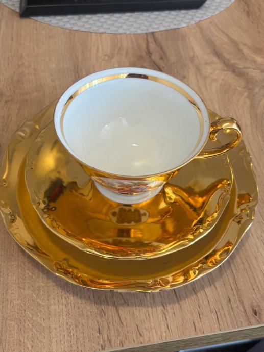 Izvrsno stanje, promjer tanjura 19 cm, promjer tanjurića 15,5cm, promjer šalice 11 cm, visina 6 cm.
