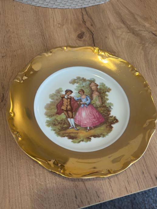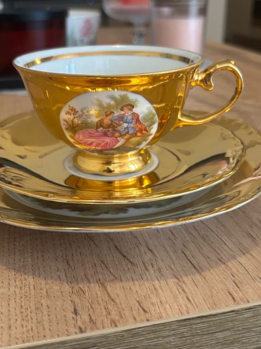 Prekrasni porculanski set sa zlatnim linijama i žanr scenom.