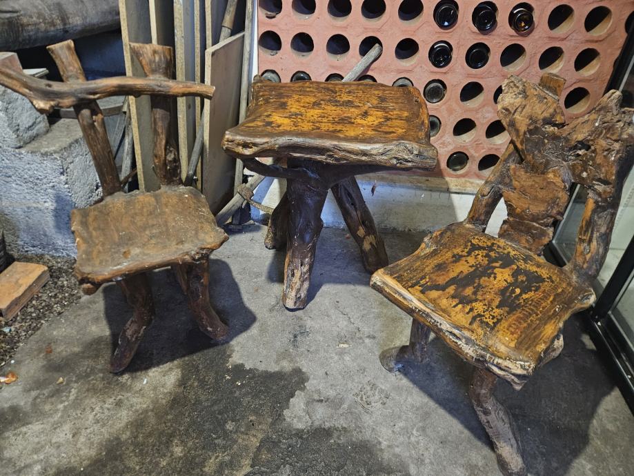 Prodajem stolić i stolice, ručno rađene od punog drveta. Cijena po dogovoru.