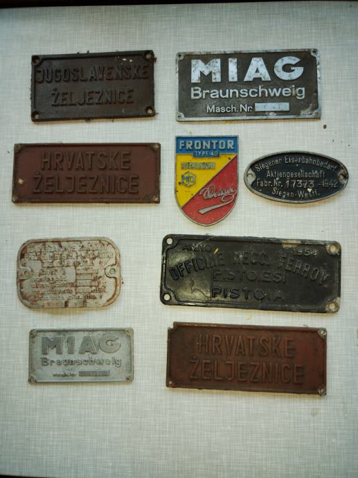 Prodajem metalne šildove za željeznička vozila, strojeve, traktora i sl. Ukupno 9 kom, cijena 3 €/kom ili 25 € sve skupa.