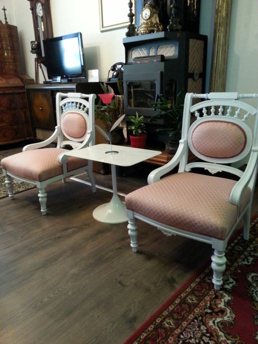 Prekrasna novo uređena kompilacija starog i novog...dvije altdeutsch polufotelje i stolič stil Guzzini ....dekoracija za ambulante butike apoteke.. plus stoječa lampa