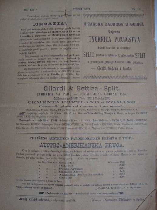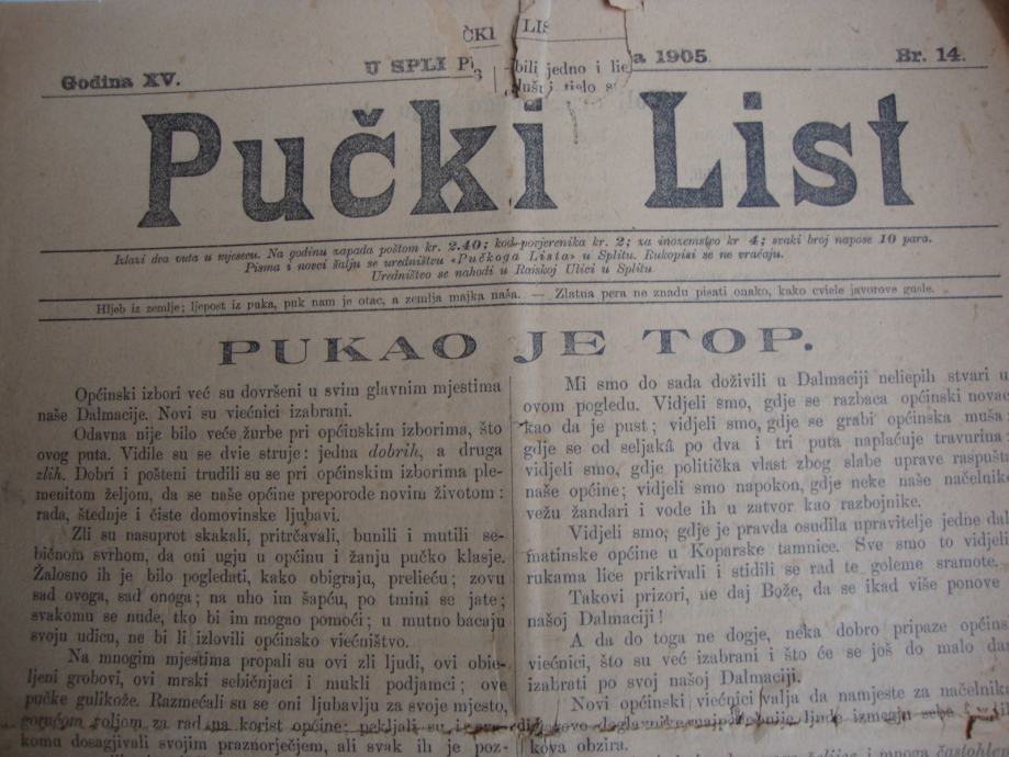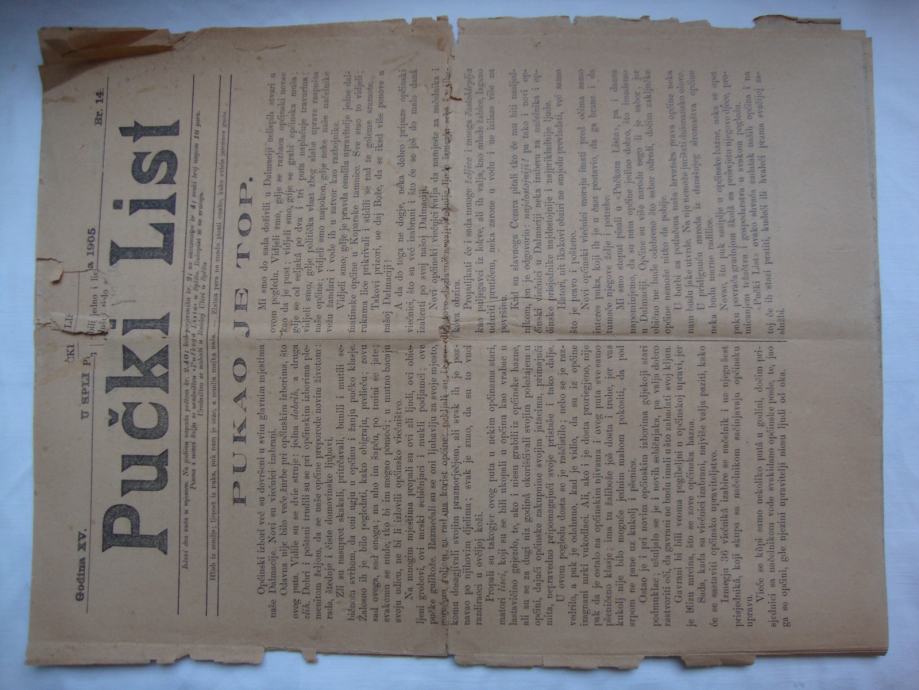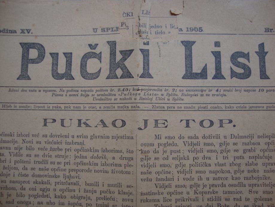 Stare novine od sto godina starosti Pučki list .Split. 7 stranica