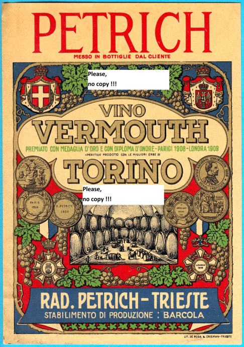 Stara originalna vinska etiketa RADISLAVO PETRICH - TRIESTE.