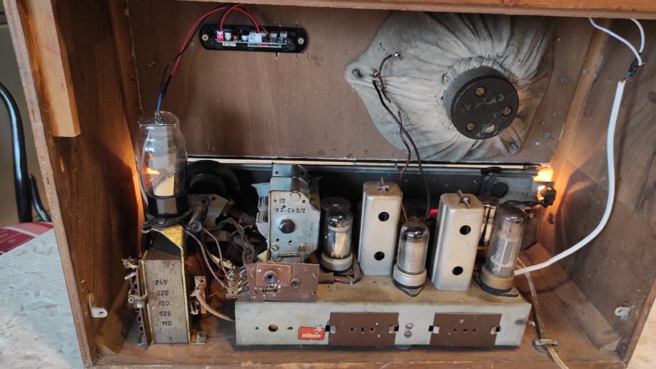 Radio TESLA HARMONIE II, ispravan lampaš, proizveden 1949. godine. U to vrijeme nije bilo UKW valnog područja, pa je ugrađen FM, BLUETOOTH, USB, MP3, TF modul, i može se slušati kao svaki drugi novi radio. Radio je uređen, napravljen servis elektronike.