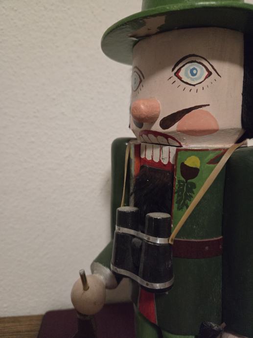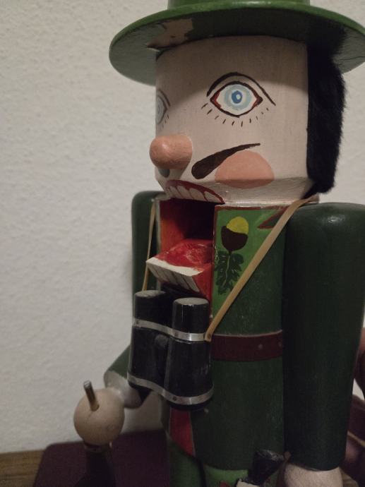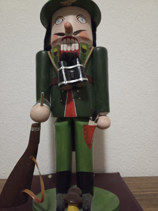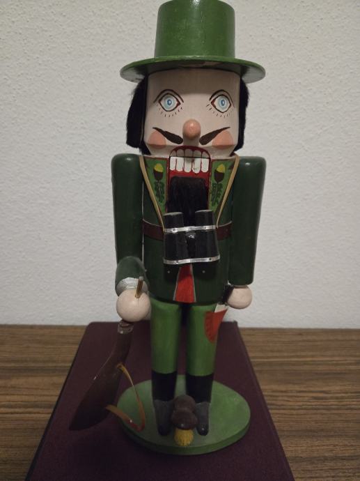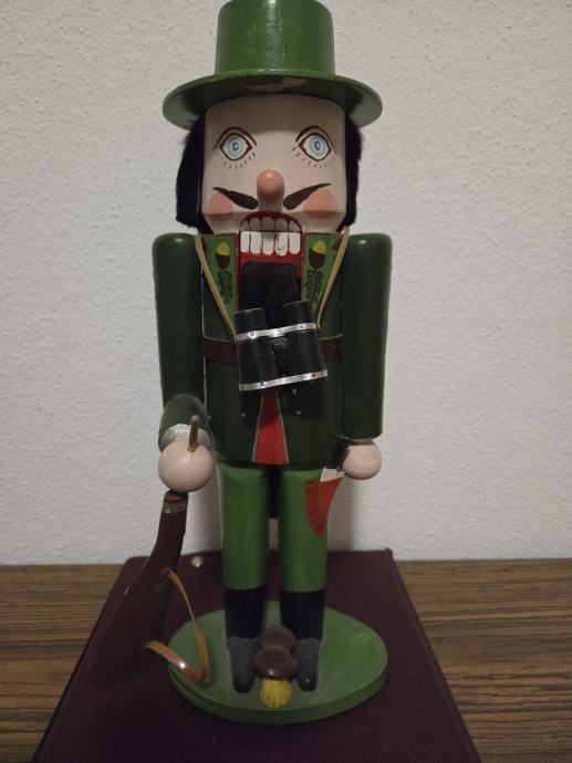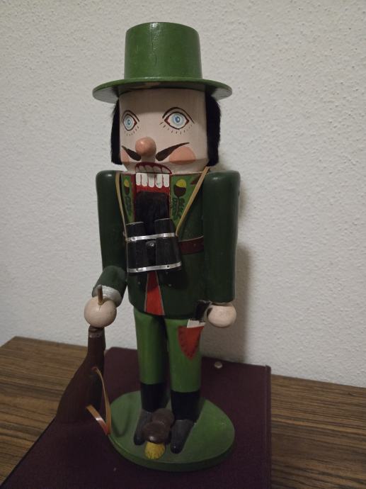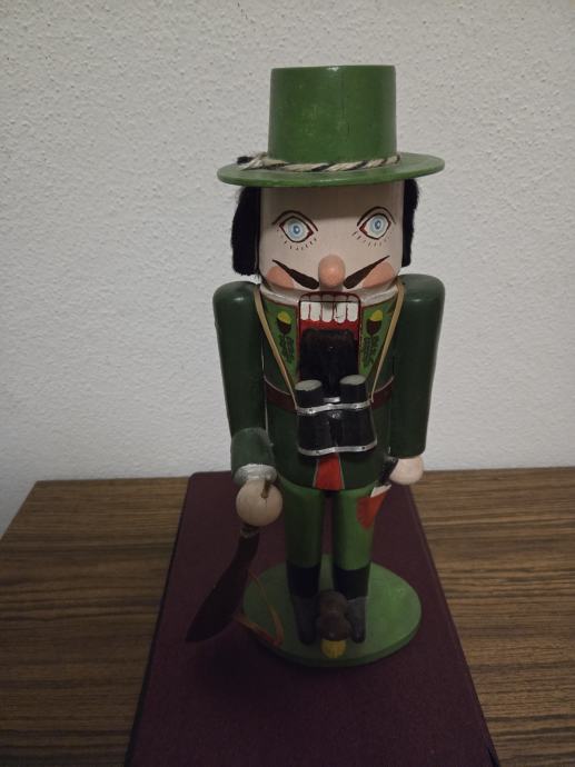Tradicionalni njemački vintage orasar by Cristian Ulbricht iz pokrajine Erzgebirge. Orasar prezentira lovca sa svim dodacima puška,dalekozor, nož . U perfekt stanju bez oštećenja. Dimenzije 37/14 cm. Dostupnost od 25.12