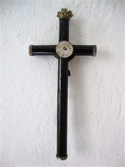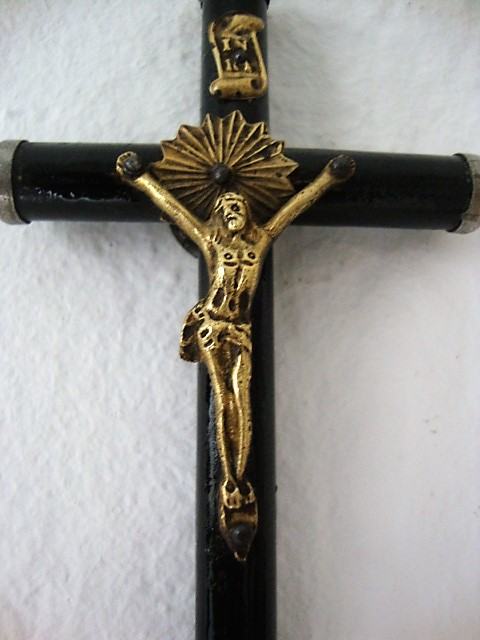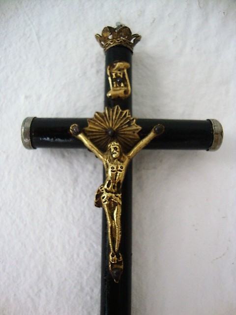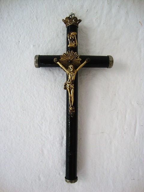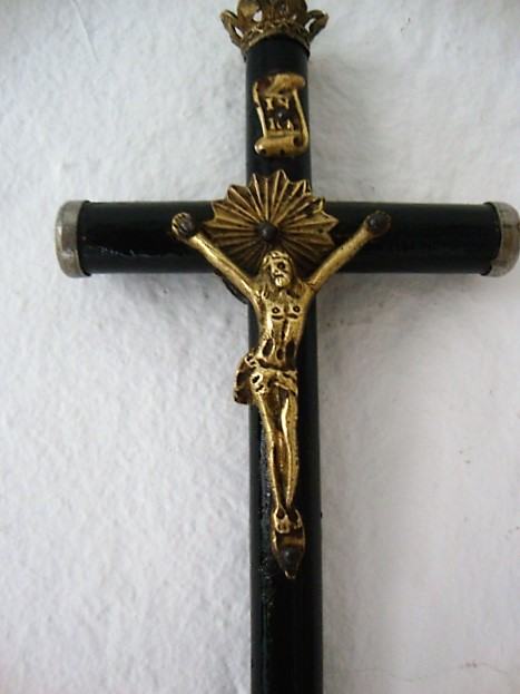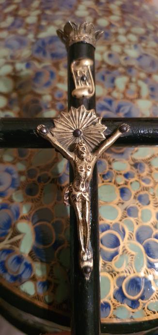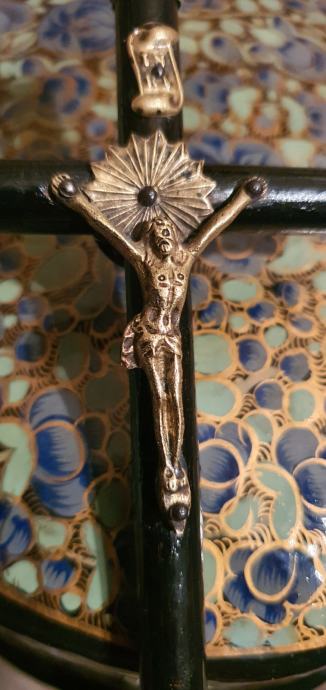 Krasan drveni križ sa aplikacijama sa strana ukrašen pozlaćenim Isusom od mesinga veoma lijep rad