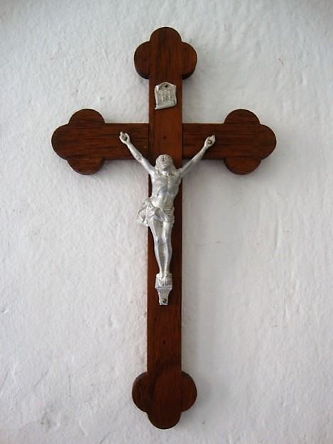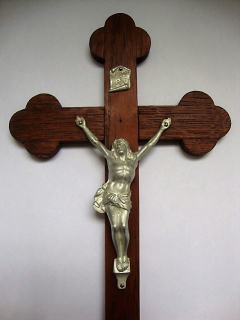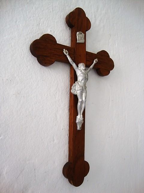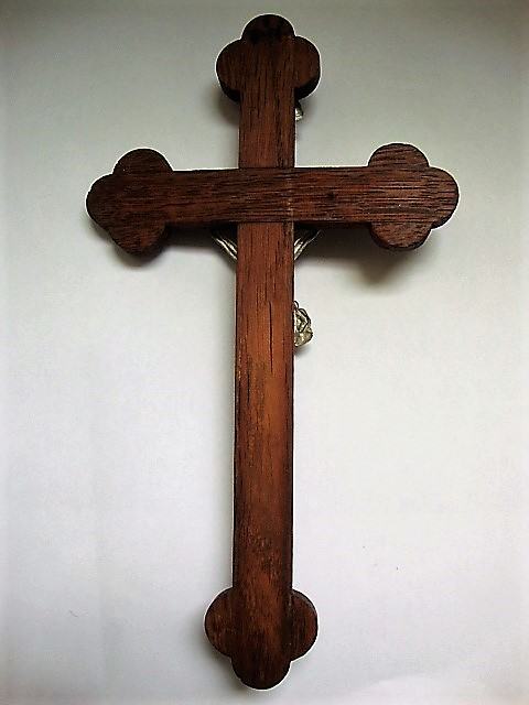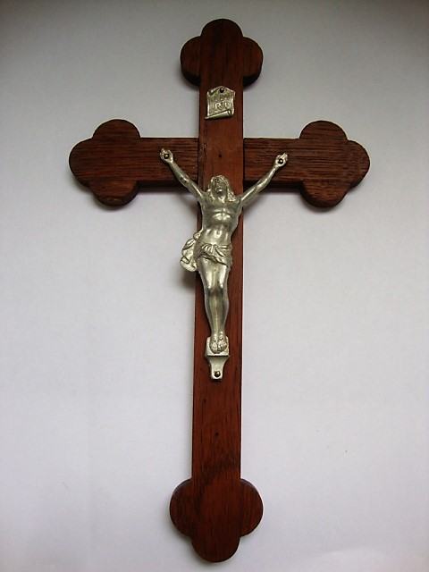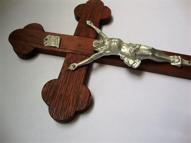 Krasno staro drveno raspelo Isus od aluminija cca.između dva rata