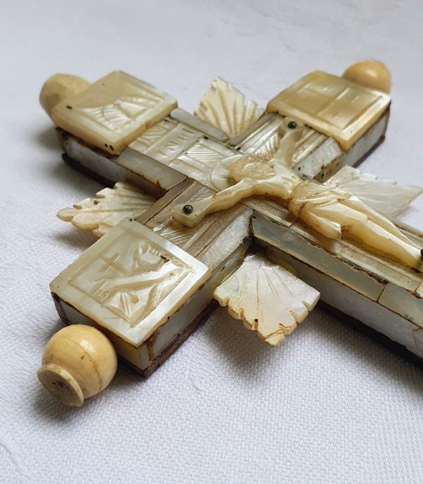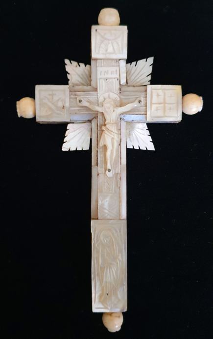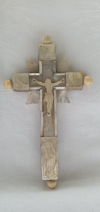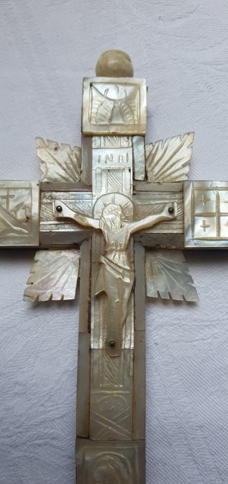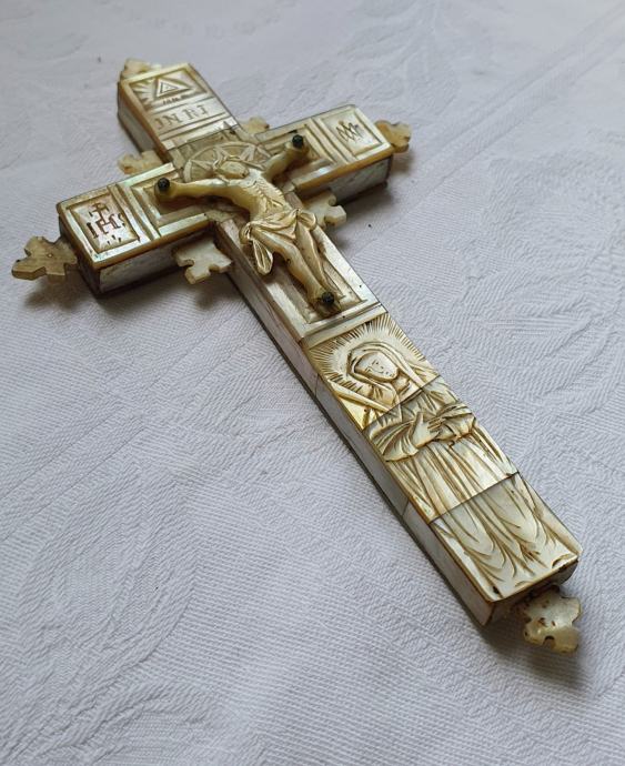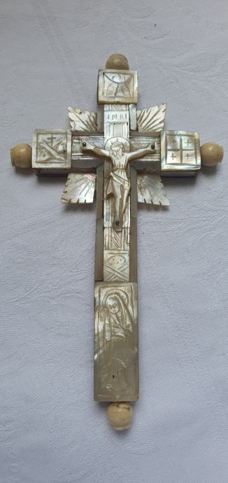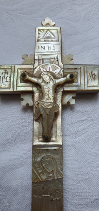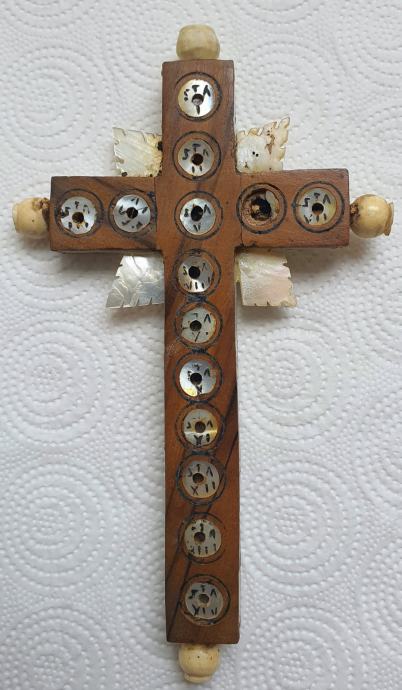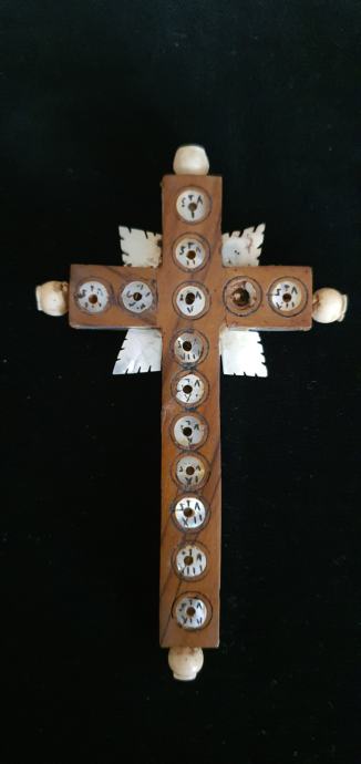 Staro rucno rezbareno raspelo drvo masline ukraseno rucno rezbarenim sedefom vrhunski rad 18./19.st.
