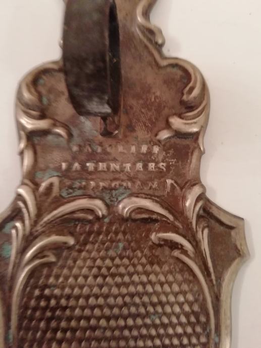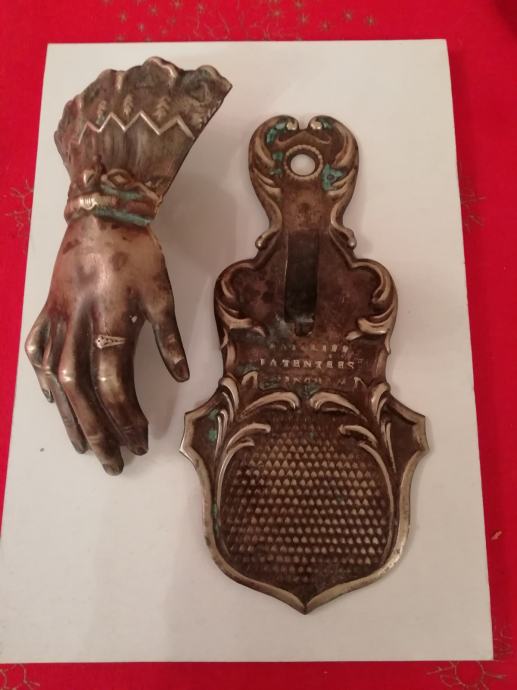 Antikna mjedena kopča ( Antique Brass Hand Letter Clip - Ratcliff, Birmingham ) J & B Ratcliff Birmingham u obliku ruke. Na stražnjoj ploči su utisnute riječi: J & B Ratcliff, Patenters, Birmingham Ova antikna kopča od mesinga za posjetnice ili bilješke je iz viktorijanskog doba, modelirana kao ženska ruka, oprugom je pričvršćena na stražnju ploču i prikazuje sljedeći patentni žig: J.& E. Ratcliff, Patenters, Birmingham. Napravljena je u drugoj polovici 1800-ih. Izrađivač je Joseph & Edmund Ratcliff vlasnici patenta iz Birminghama, Engleska. Ratcliffovi su bili poznati proizvođači mjedi tijekom viktorijanskog doba. Djelovali su na St Pauls Squareu u Birminghamu od 1839. do 1881.