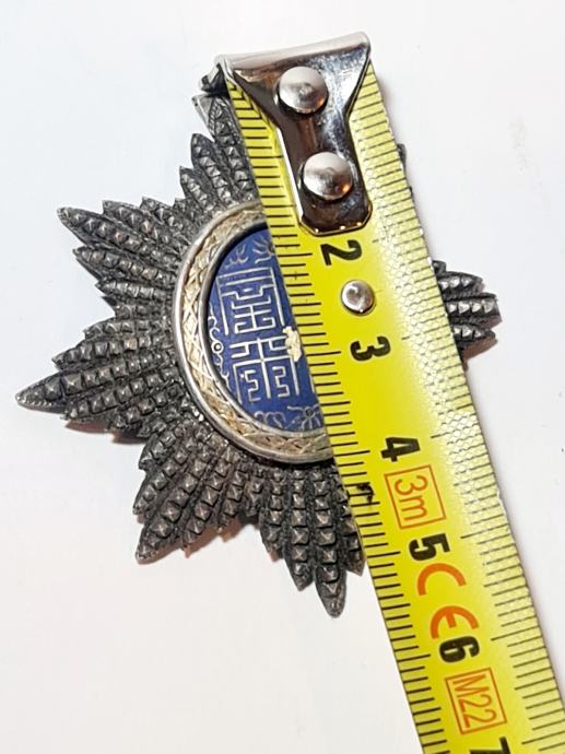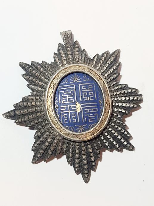 Ovo je autentična Zvijezda Imperijalnog Reda Zmaja od Annama, izrađena u emajlu na srebru, koja predstavlja kolonijalnu Francusku eru. Rijetka i povijesna stavka koja prikazuje karakterističan dizajn ovog prestižnog odlikovanja. Zvijezda je u dobrom stanju, s vidljivim detaljima kao što je prikazano na fotografijama. Napomena: ne dolazi s vrpcom ili jamstvom.