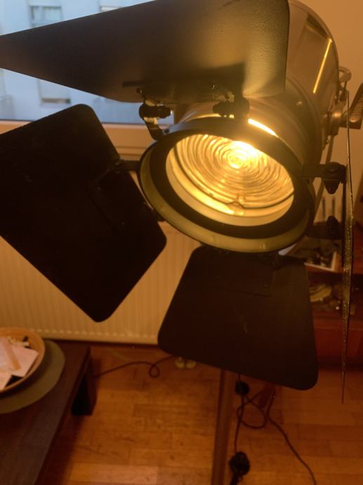 Prodajem PROFESIONALNI vintage Spotlight -Reflektor binski,filmski i studijski.U perfektnom stanju potpuno funkcionalan.Podesiv po visini u rasponu od 140-190 cm te mobilan u svim smjerovima.Reflektor je bio vlasnistvo čuvenog redatelja i slikara Željka Senecica sto mu daje dodanu vrijednost.Iskazana cijena od 450€ je fiksna te molim samo ozbiljne ponude!