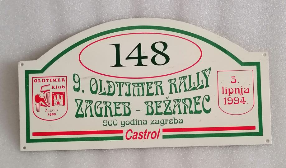 Registarska tablica 1994. - 9.Oldtimer Rally Zagreb - Bežanec - metalna