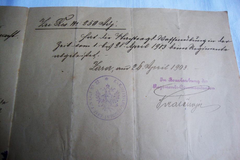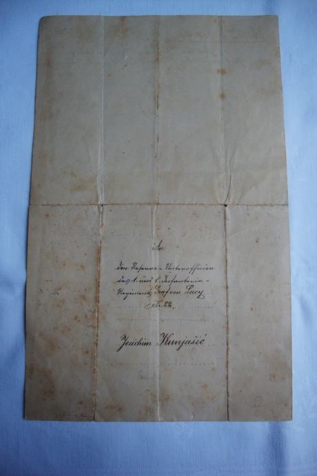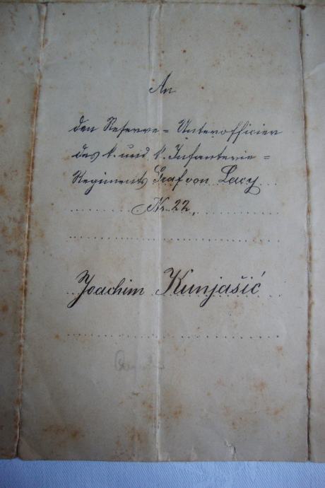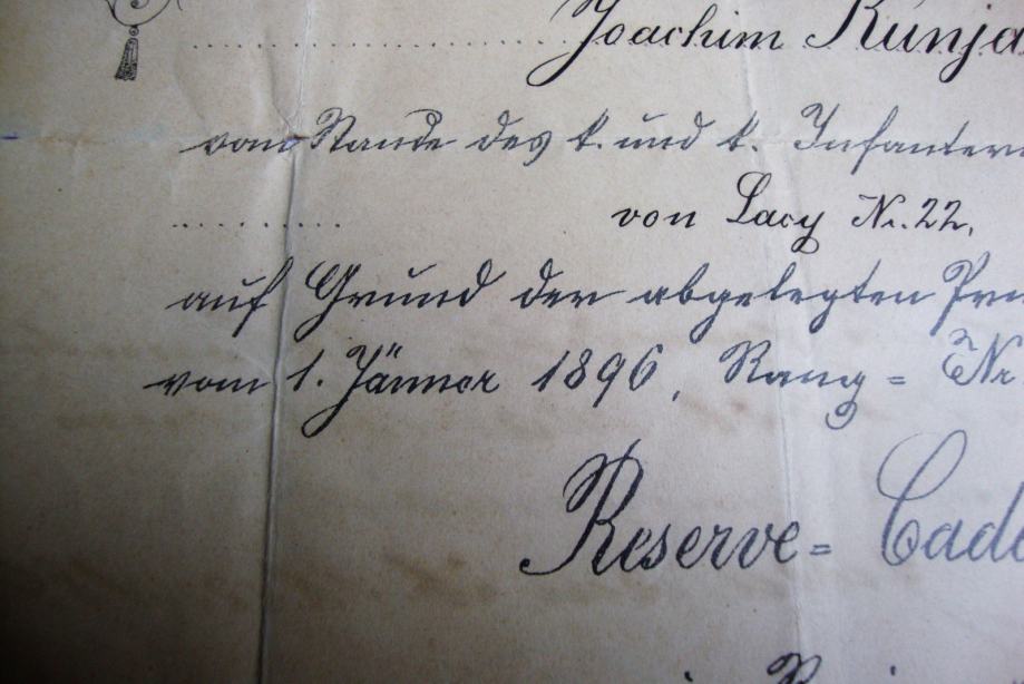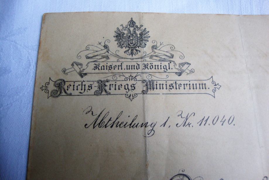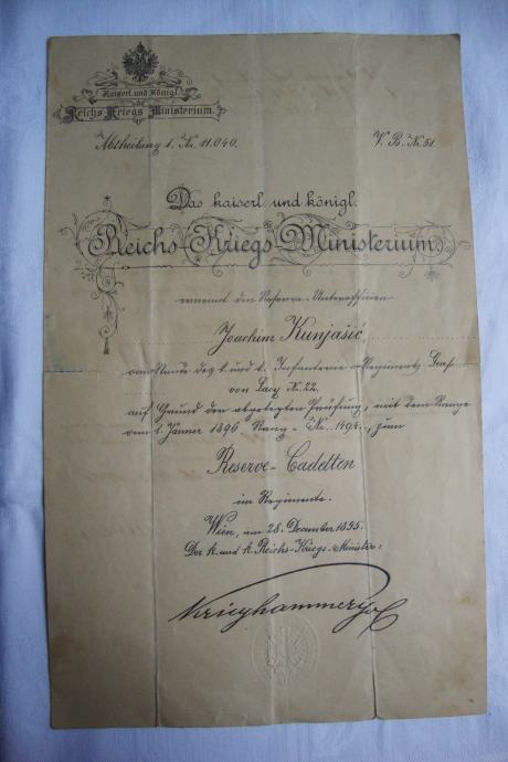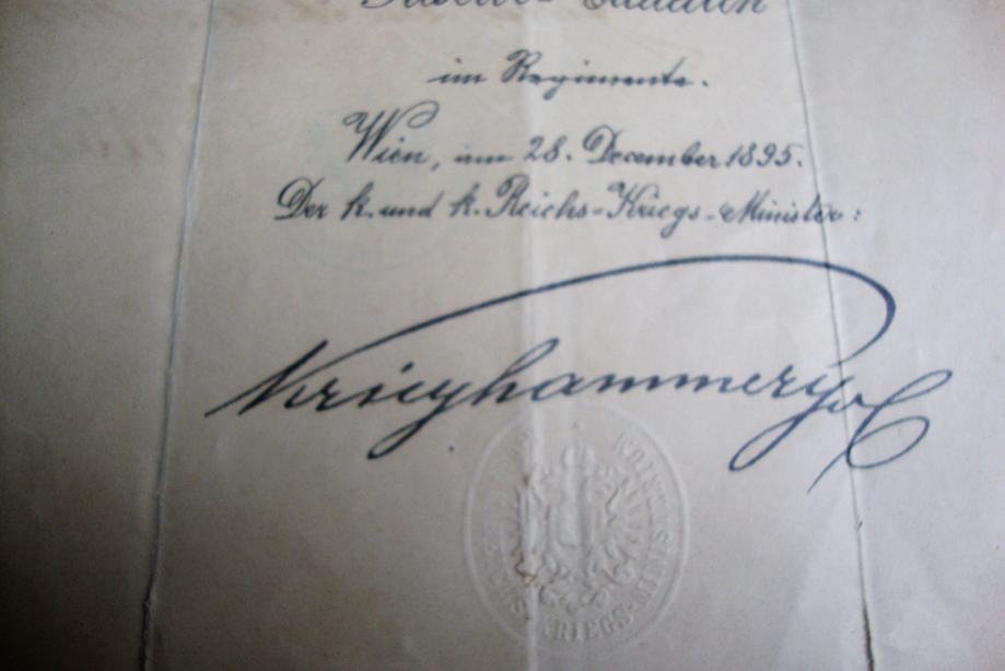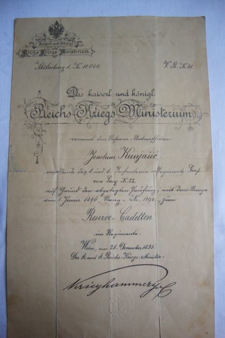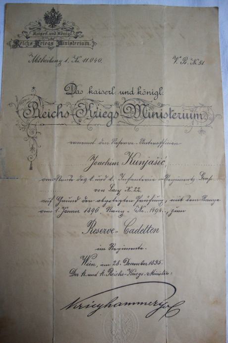 Jako rijetko sa potpisom ministra za vrijeme Austrougarske iz 1895.godine ,Dodjeljeno J. Kunjašiću iz Dalmacije u Beču ,Dvolist dimenzije 21 cm x 34 cm stanje izvrsno očuvano